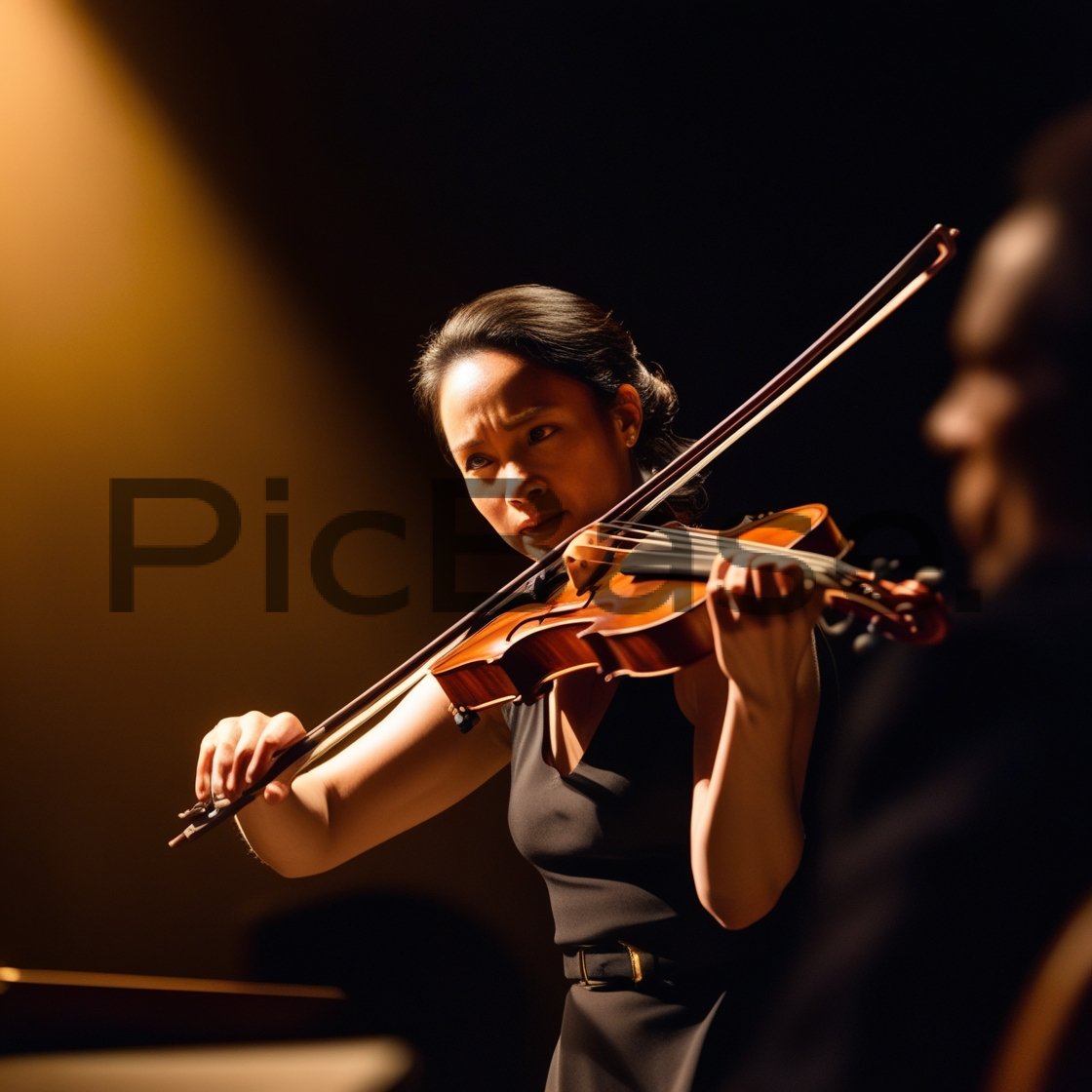 Violinist Performing on Stage in Dramatic Lighting