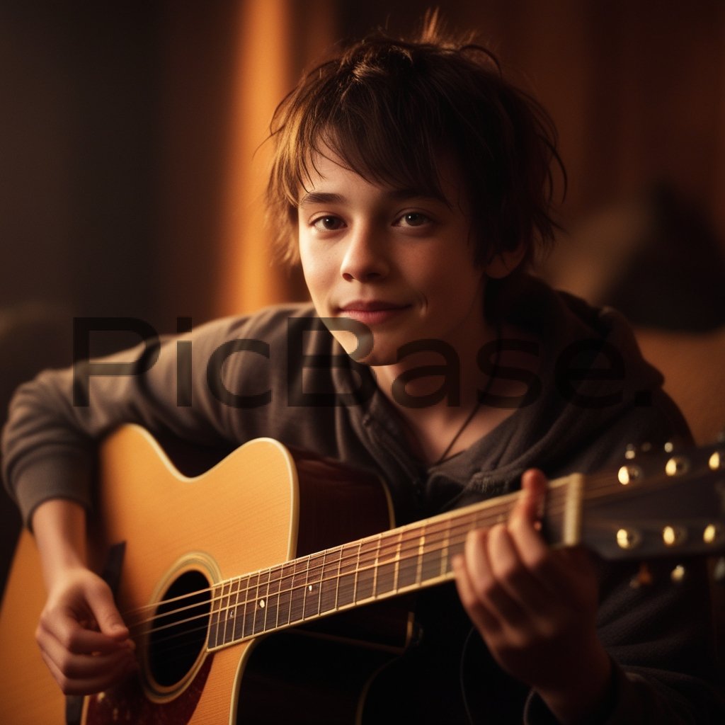 Young Musician Playing Guitar in Warm Lighting